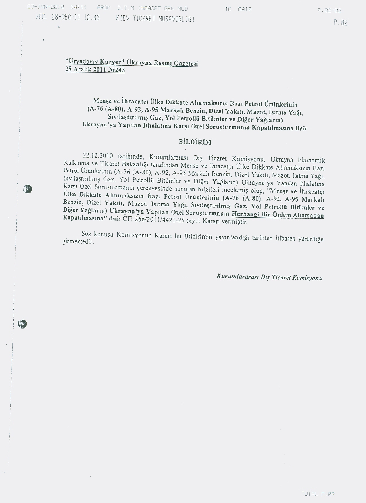 Sayı : TİM.GAİB.GSK.AR-GE 2012/ 171