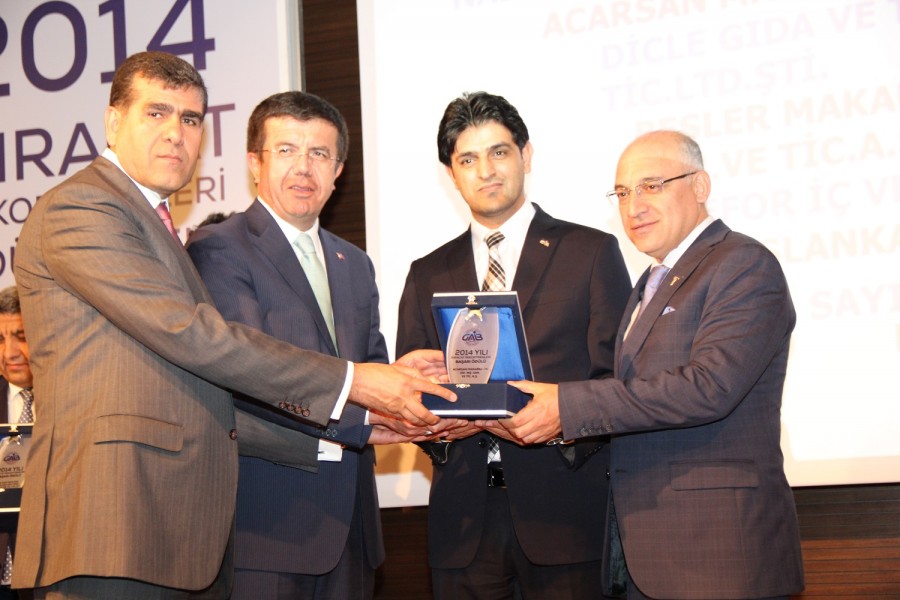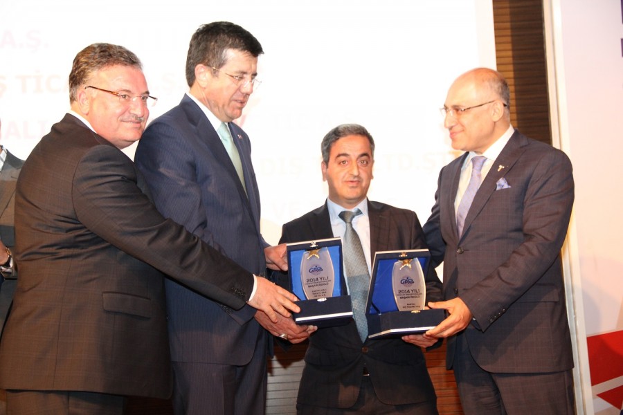 2014 yılında en fazla ihracat yapan bin firma arasına giren Güneydoğulu İhracatçı Birlikleri üyesi firmalara İhracatın Rekortmenleri Ödül Töreninde Ekonomi Bakanı Nihat Zeybekçi, TİM Başkanı Mehmet Büyükekşi ve GAİB Birlik Başkanları tarafından tarafından ödülleri verildi.