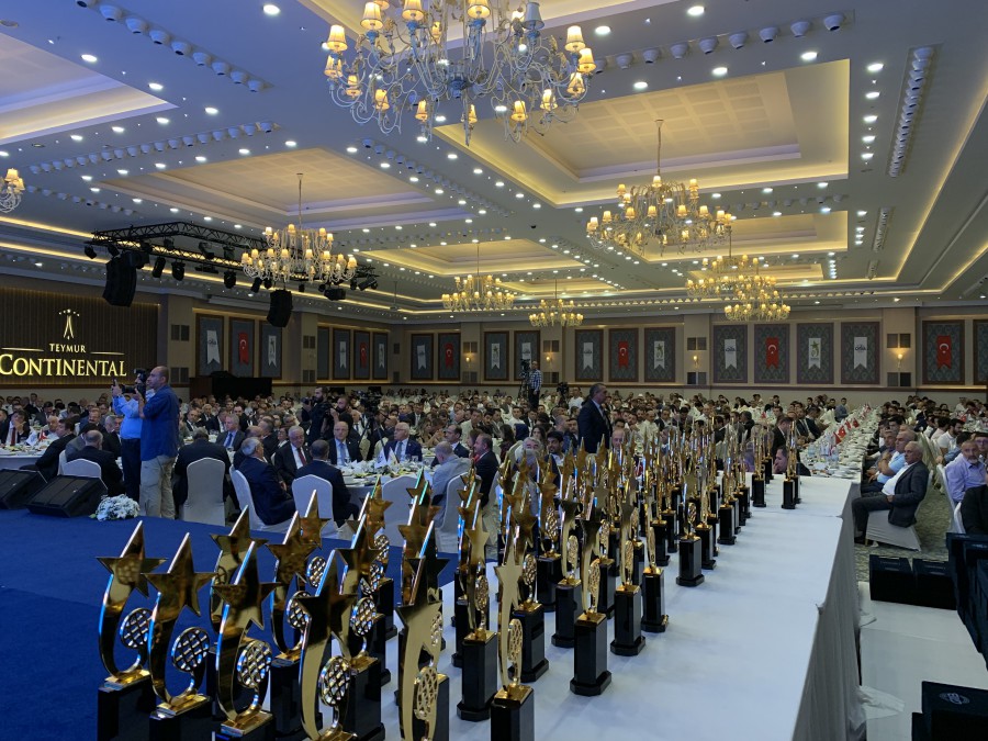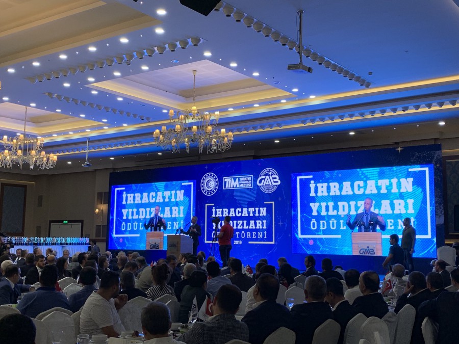 İhracatın Yıldızları Ödül Töreni ile bölge ekonomisine sağladıkları katkıları taltif etmek adına Birliğimizden en çok ihracat yapan ilk 100 firmaya ödülleri takdim edilmiştir. Gaziantep Valimiz Sayın Davut Gül, Gaziantep Büyükşehir Belediye Başkanımız Sayın Fatma Şahin ve Ticaret Bakan Yardımcımız Rıza Tuna Turagay olmak üzere birçok değerli isim ve ihracatçı firmalarımız ile bir araya gelinmiştir. Törenimizin, daha ileriye koşmak ve ihracat hedeflerini büyütmek anlamında firmalarımıza bir teşvik olacağına inanılmaktadır.
