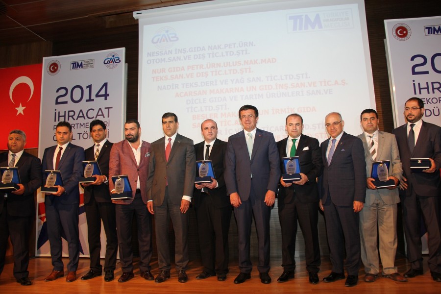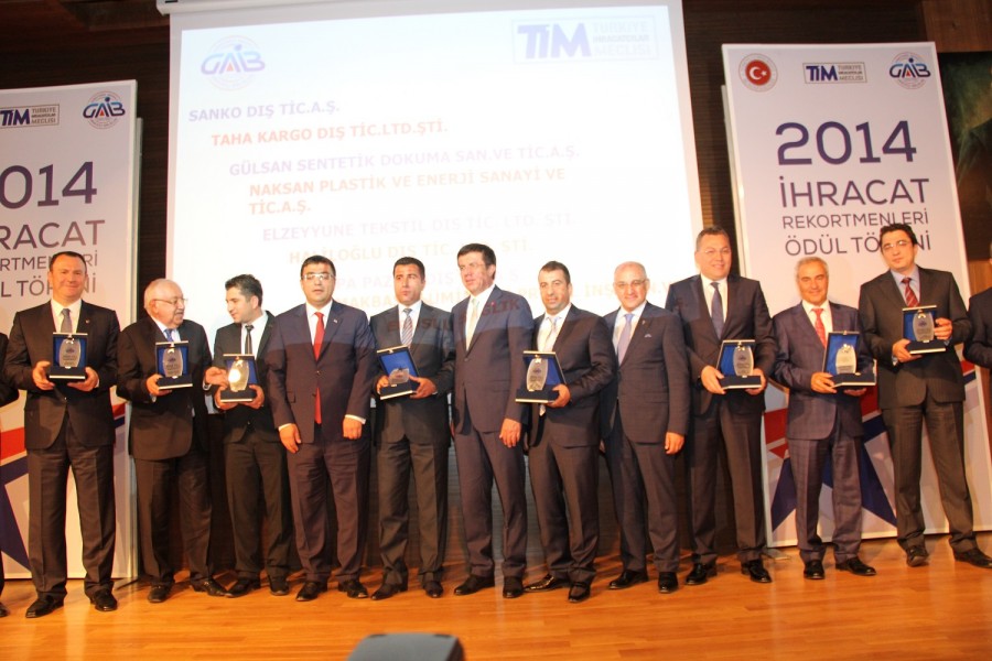 2014 yılında en fazla ihracat yapan bin firma arasına giren Güneydoğulu İhracatçı Birlikleri üyesi firmalara İhracatın Rekortmenleri Ödül Töreninde Ekonomi Bakanı Nihat Zeybekçi, TİM Başkanı Mehmet Büyükekşi ve GAİB Birlik Başkanları tarafından tarafından ödülleri verildi.