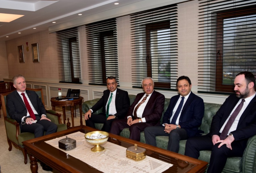 Gaziantep Valisi Davut Gül’ü ziyaret eden Güneydoğu Anadolu İhracatçı Birlikleri Koordinatör Başkanı Ahmet Fikret Kileci ve yönetim kurulu üyeleri gündemle ilgili konuları değerlendirerek bölge ihracatının arttırılması yönündeki çalışmalar hakkında Vali Bey’e bilgi verdi.