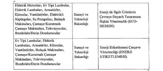 Elektrik Motorları, Ev Tipi Lambalar, Elektrik Lambaları, Armatürler, Klimalar, Vantilatörler, Elektrikli Süpürgeler, Su Pompalarının bulunduğu satıra bulaşık makinaları, kurutmalı çamaşır makinaları, televizyonlar, buzdolabı ve derin dondurucular eklendi. Böylece yeni eklenen ürünler ECO-DESIGN uygulaması kapsamına alınmıştır.