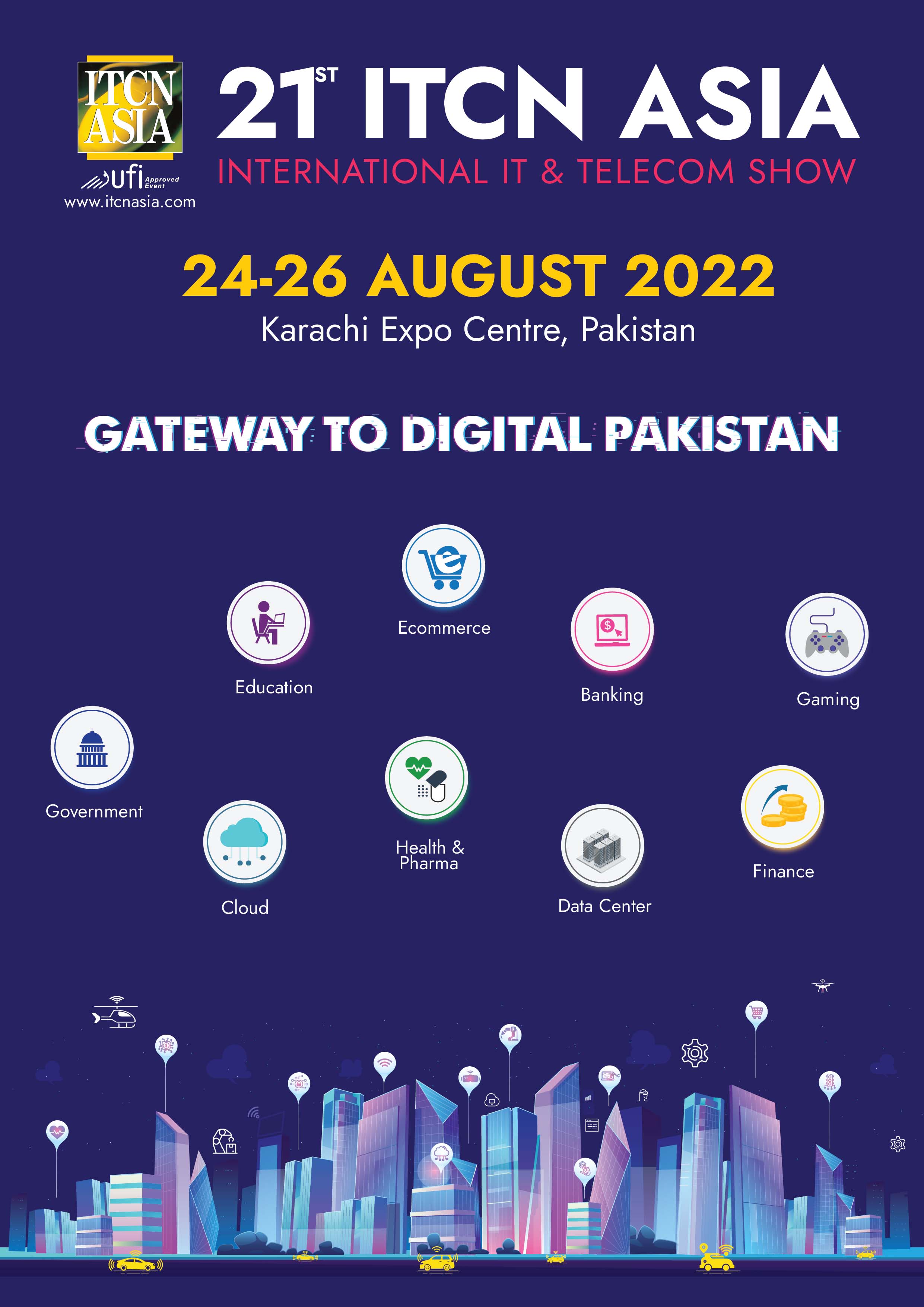 T.C. Ticaret Bakanlığı İhracat Genel Müdürlüğü’nden alınan bir yazıda, T.C. Dışişleri Bakanlığından alınan bir yazıya atıfla, 24-26 Ağustos 2022 tarihleri arasında Pakistan'daki en büyük teknoloji etkinliği olan "21. ITCN Asia" bilgi teknolojileri ve telekomünikasyon fuarının Karaçi Fuar Merkezi'nde düzenleneceği bildirilmektedir.