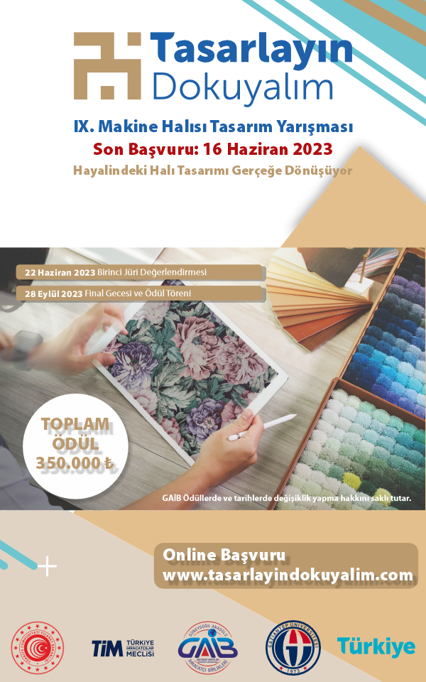 Bu yıl düzenlenecek olan IX. Makine Halısı Tasarım Yarışması’na tüm genç tasarımcıları davet ediyoruz. Detaylı bilgi ve başvuru için https://www.tasarlayindokuyalim.com/