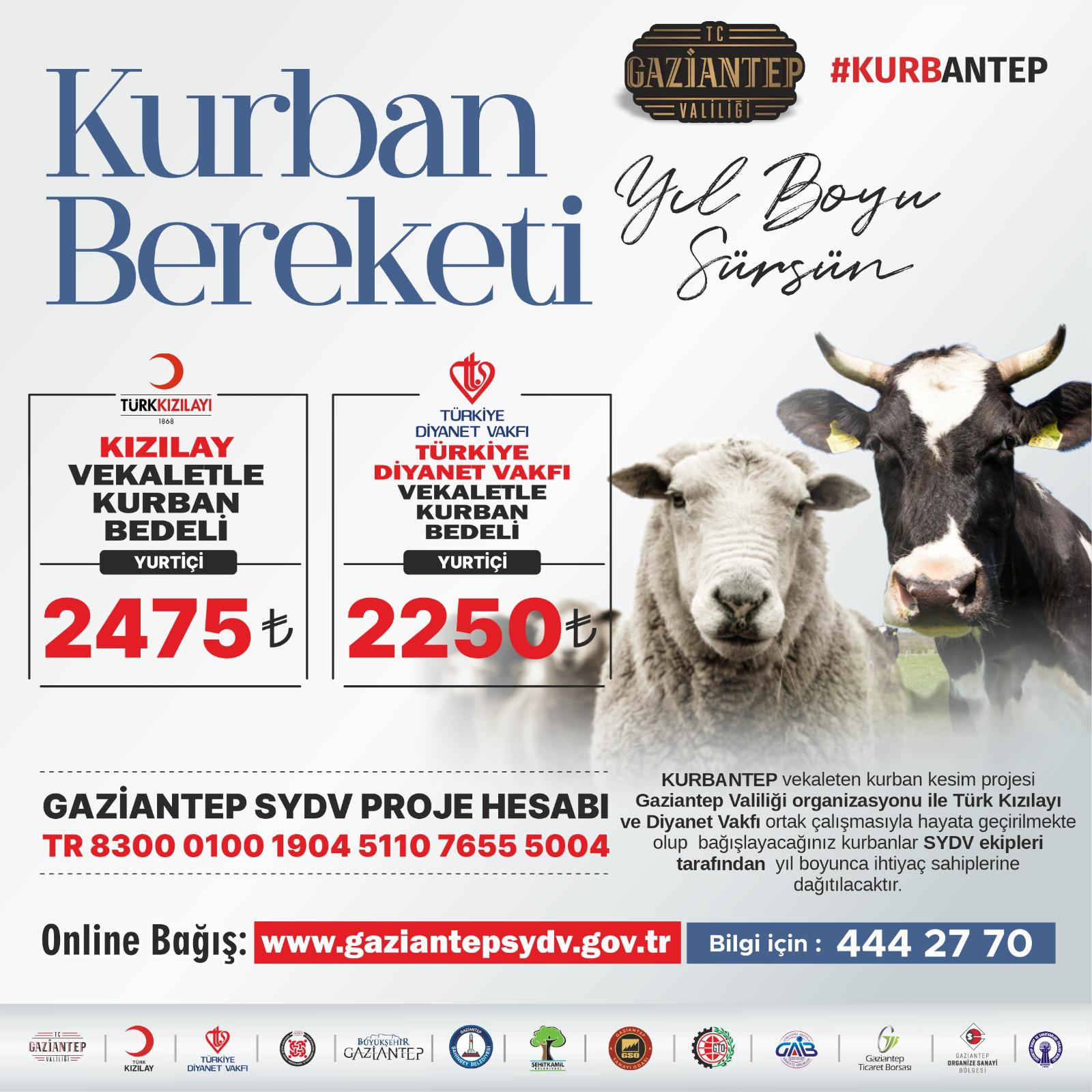 Gaziantep Valiliği’nden alınan bir elektronik iletide, Valilik organizasyonu ile Türk Kızılayı ve Diyanet Vakfı ortak çalışmasıyla hayata geçirilmekte olan SYDV ekipleri tarafından yıl boyunca ihtiyaç sahiplerine dağıtılacak olan Kurban Bereketi Projesi görseli ekte yer almaktadır.