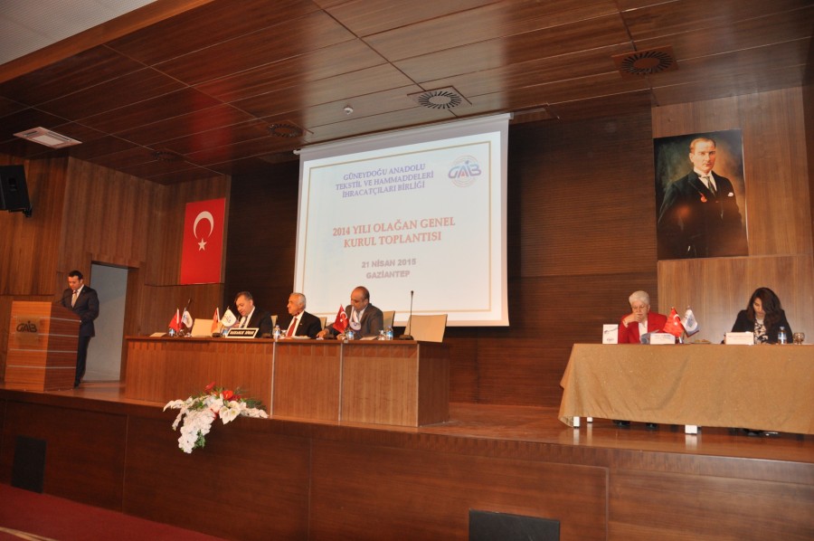 Güneydoğu Anadolu Tekstil Ve Hammaddeleri İhracatçıları Birliği, 2014 yılı Olağan Mali Genel Kurulu GAİB hizmet binasında yapıldı. Başkan Sami Konukoğlu 2014 yılının sektörel açıdan bakıldığında verimli bir yıl olarak geçtiğini, 2015 yılının ilk dört ayında yaşanan ekonomik durgunluğun ise yılın ikinci döneminde normale dönmesini beklediklerini ifade etti.